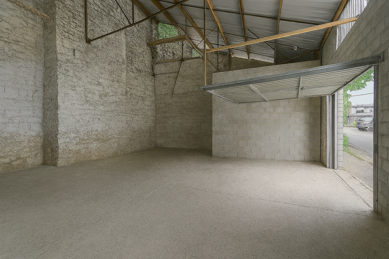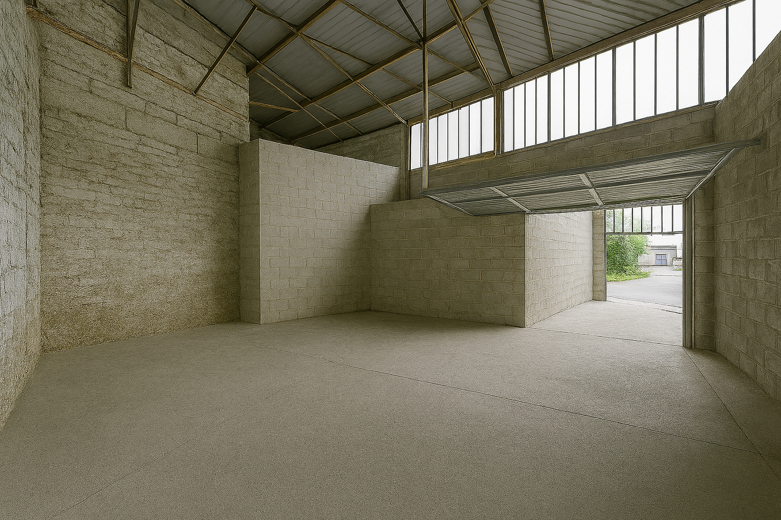 L’entrepôt dispose d’une porte sectionnelle de garage classique, de fenêtres et d’une aération naturelle, assurant un espace sain et fonctionnel. Il bénéficie également d’un compteur électrique individuel avec éclairage présent afin d’illuminer ce dernier. L’accès est privé, disponible 24h/24, et un stationnement aisé est possible juste devant, quel que soit le type de véhicule. Pas de zone de chargement/déchargement spécifique mais une accessibilité optimale.