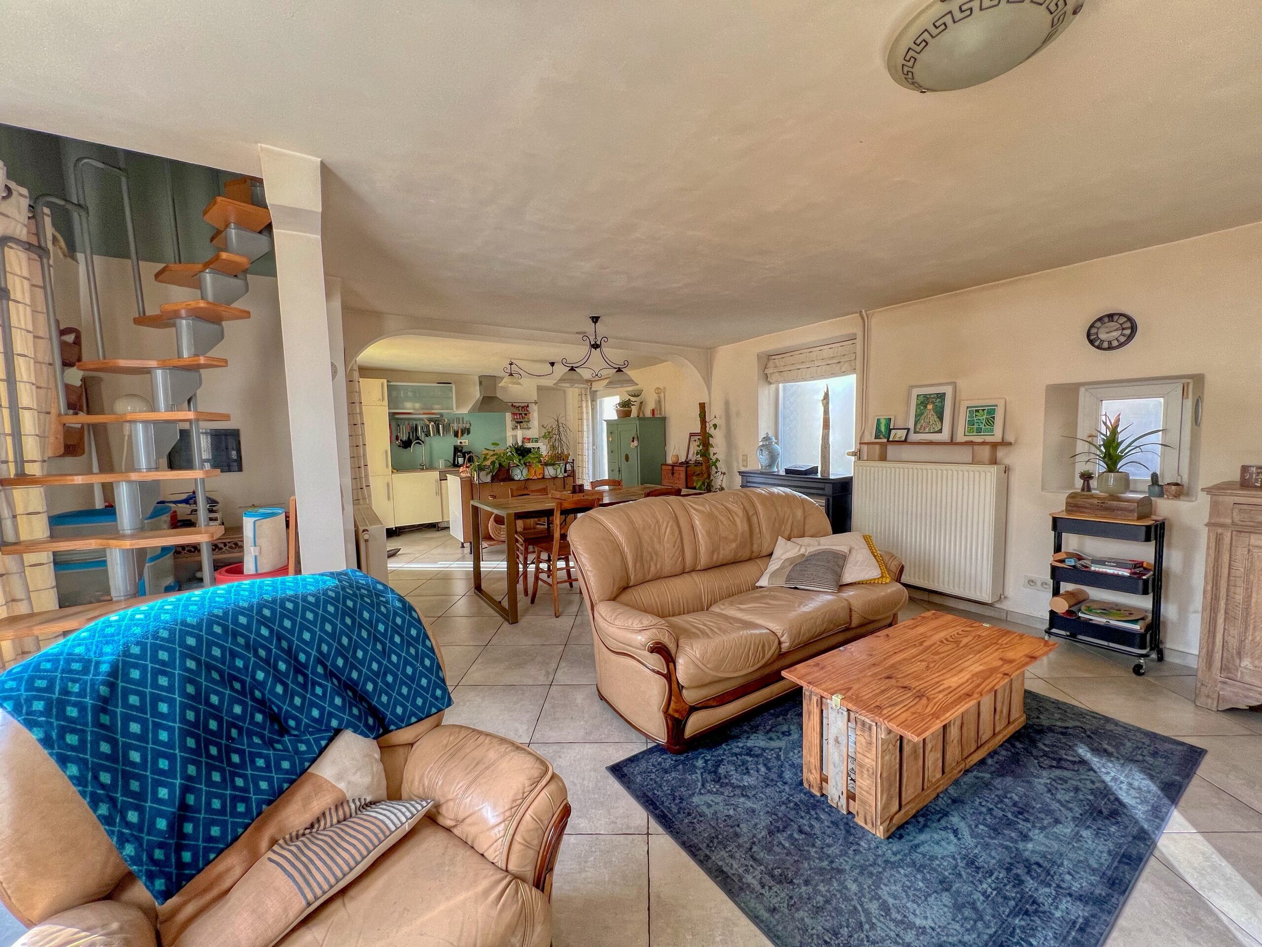 À l’intérieur, chaque espace reflète le soin et la qualité apportés à la maison : finitions soignées et décoration actuelle. La maison dispose de deux salles d’eau, de deux WC, d’un bureau dont le mobilier reste sur place, ainsi que de multiples rangements intégrés. Elle offre une atmosphère chaleureuse, mêlant cachet, confort et modernité, malgré une chambre en enfilade et un accès à l’étage particulier.